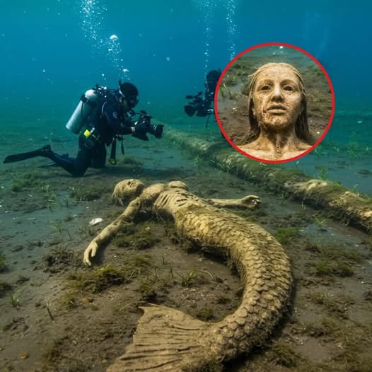 Deep beneath the ocean’s surface, where sunlight fades into darkness and only the bravest dare to explore, a team of experienced divers made a discovery that left the entire world stunned. During a routine underwater expedition near an uncharted trench, the divers’ flashlights caught sight of something unusual partially buried in the sand—an eerie, human-like figure with scales shimmering faintly in the deep-sea light. What they uncovered would spark global fascination: a mummified creature that appeared to be half-human, half-fish… a mermaid.